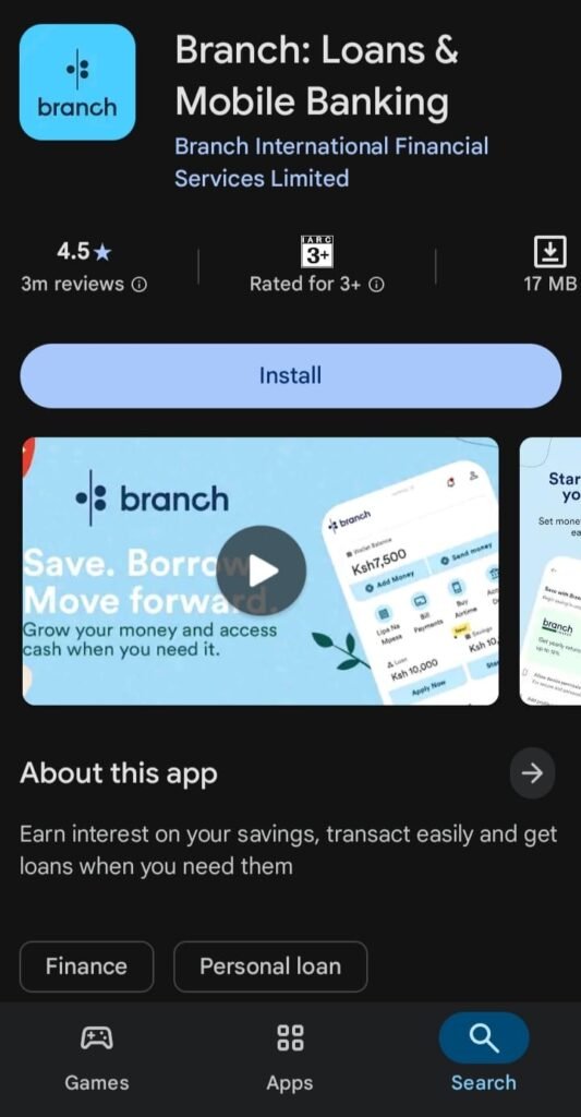 Branch is a mobile-first financial services app that offers instant personal loans, savings, money transfers, and bill payments — all from your smartphone. Think of it as a bank in your pocket.
