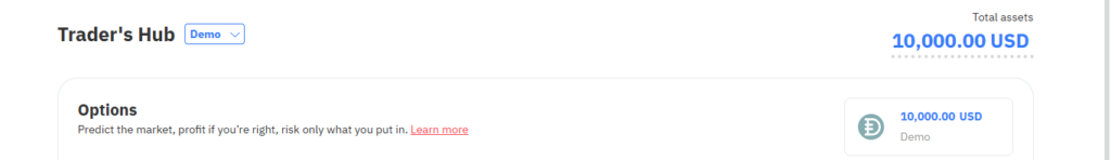 If your prediction is correct, you profit. If not, you lose your stake. You can start practising immediately with a free demo account loaded with $10,000 in virtual funds — no deposit required.